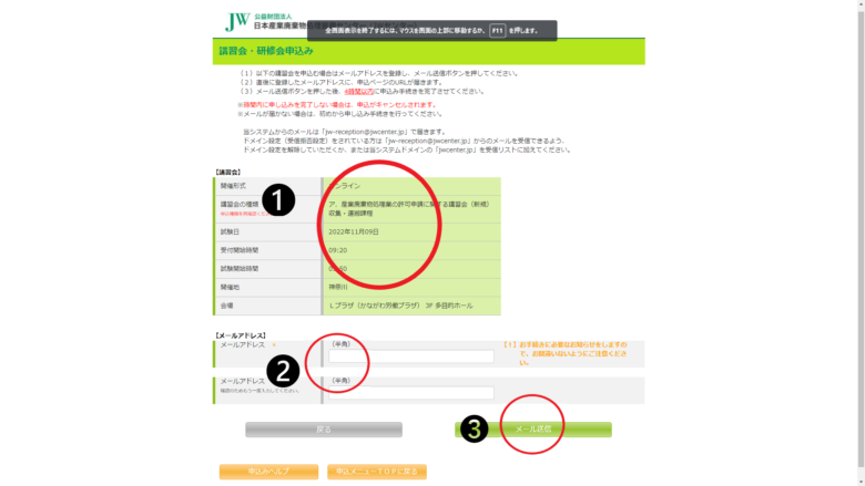 特に、講習会の種類や開催地の間違いが多いので、再確認をオススメします。