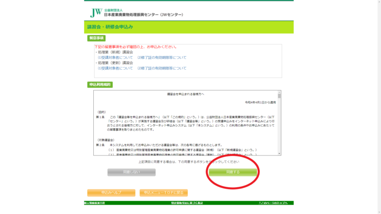 こちらが、講習会・研修会を申込む為に必要なページとなります。